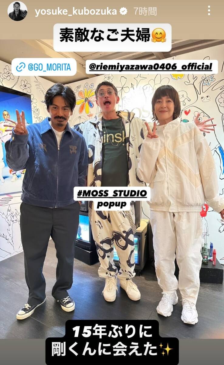女優の宮沢りえさんと、夫で俳優の元V6の森田剛さんの素敵な夫婦ショットが公開されました。この写真は、俳優・窪塚洋介さんのインスタグラムのストーリーズに登場したもので、宮沢さんと森田さんが所属する事務所「MOSS」のデザインスタジオ「MOSS STUDIO」が、11日から初のポップアップストアを開店した際に撮影されたものです。