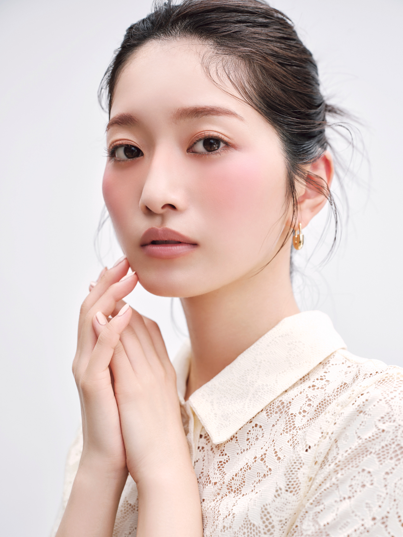 オレンジとピンクのグラデーションチークは、ほんのり甘さを加えてくれる魔法。なんとも言えない曖昧さを持たせることで、見ている人の心にも響くものがあります。このスタイルは、誰にでも似合う汎用性を持っているのが嬉しいポイント。心が動く瞬間を生み出すことができるのは、メイクの力の一部ですね。