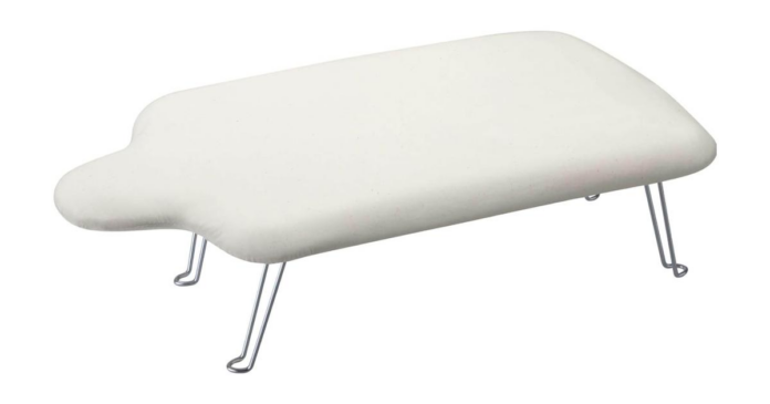 このアイロン台は約1600gと軽量で、使わないときにはコンパクトに収納可能。クローゼットの隙間にもすっぽり収まります。スチールメッシュ構造で熱に強いので、アイロンも安定してかけられて、パリッとした仕上がりに。布は綿100%で、仕上がりが美しいのもポイントです。