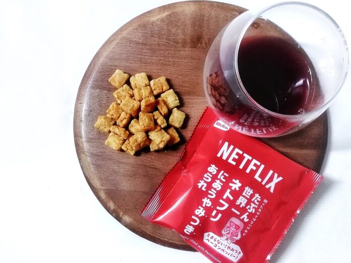 この記事では、栗山米菓の「やみつきあられ」とNetflixのコラボ商品、ベーコンペッパー味が紹介されています。この新商品は、特に「やみつき」の共通点から生まれたもので、映画やシリーズを観ながら楽しむおつまみとして提案されています。