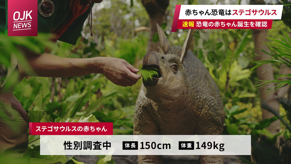 ジャングリア沖縄の発表によると、誕生したという赤ちゃん恐竜はステゴサウルスだとのこと。