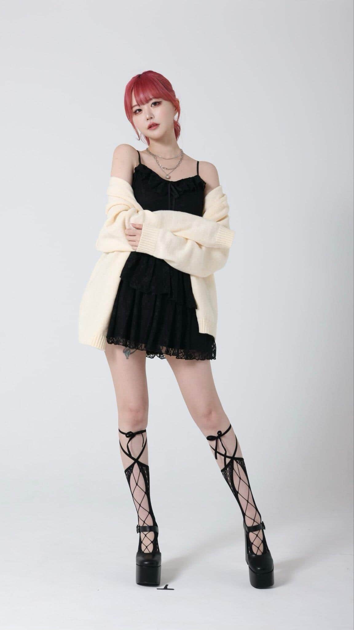 轟ちゃんは、2枚の写真を公開しています。1枚目では、クリーム色のフリル付き衣装を着てお腹周りの肉を見せながら笑顔を浮かべた姿。2枚目は、黒いキャミソールワンピースとニットでドレスアップし、スリムなスタイルを見せています。この変貌に対し、ネットには多くの驚きや共感の声が寄せられています。