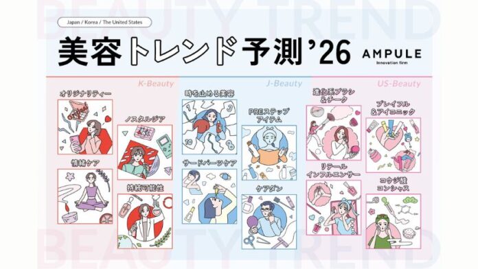 トレンダーズ株式会社が韓国のGlowdayz Inc.、アメリカのCosme Hunt Inc.と共同で「日韓米美容トレンド予測2026」を発表しました。各国を象徴するキーワードを選出しています。