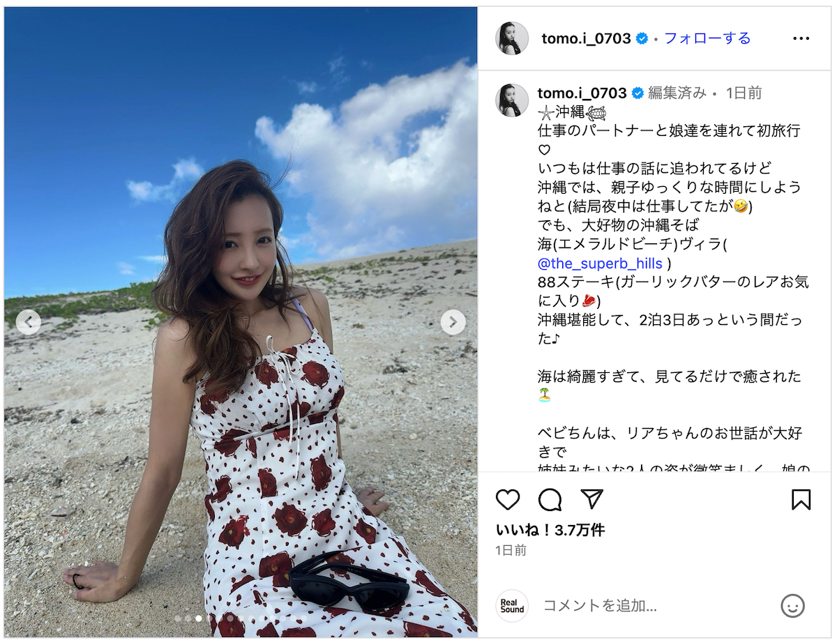タイトル: 板野友美、初の家族旅行を沖縄で満喫する様子を公開