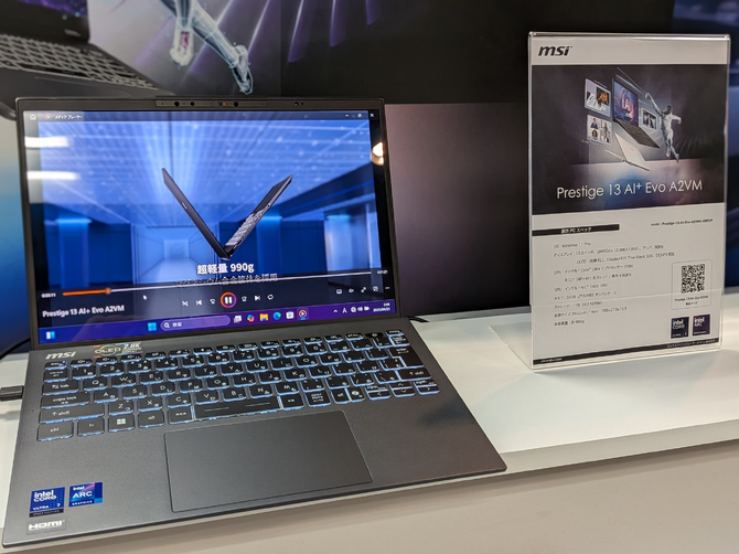 ビジネス・クリエイター向けモデルとしては「Prestige 13 AI+ Evo A2VM」をはじめ、「Summit 13 AI+ Evo A2VM」「Venture A14 AI+ A3HM」といったモデルが展示。AI技術によってパフォーマンスが向上し、ソフトやWebブラウザの同時立ち上げなどあらゆるシーンで活用可能です。