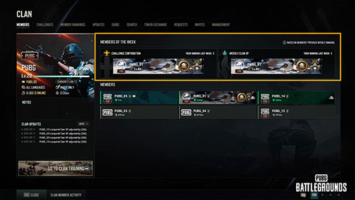 その他、クランシステムの強化も行われ、クランメンバーの週間貢献度を確認できる「クランメンバーランキング」ページが新たに追加されました。さらに、チャレンジ貢献度および週間クランXP項目ごとの1位プレイヤーが「週間クランメンバー」として選定される機能も導入されました。