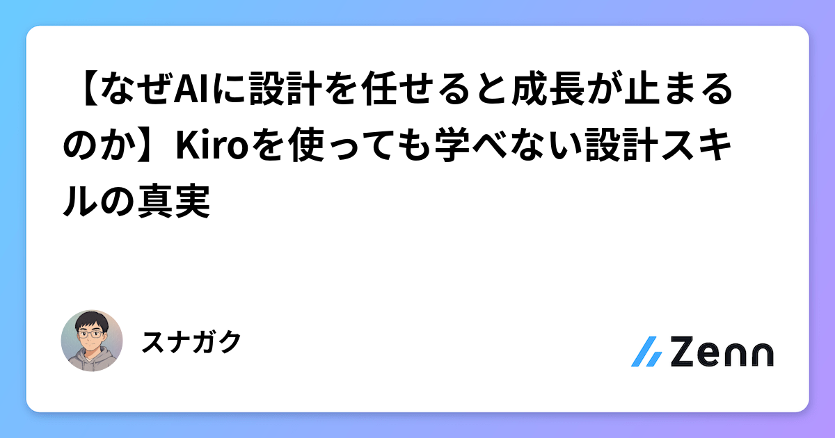 そこで「AIを使いつつ、設計スキルを最大限高めるにはどうしたらいいか?」を自分なりに整理してみました。まずは…