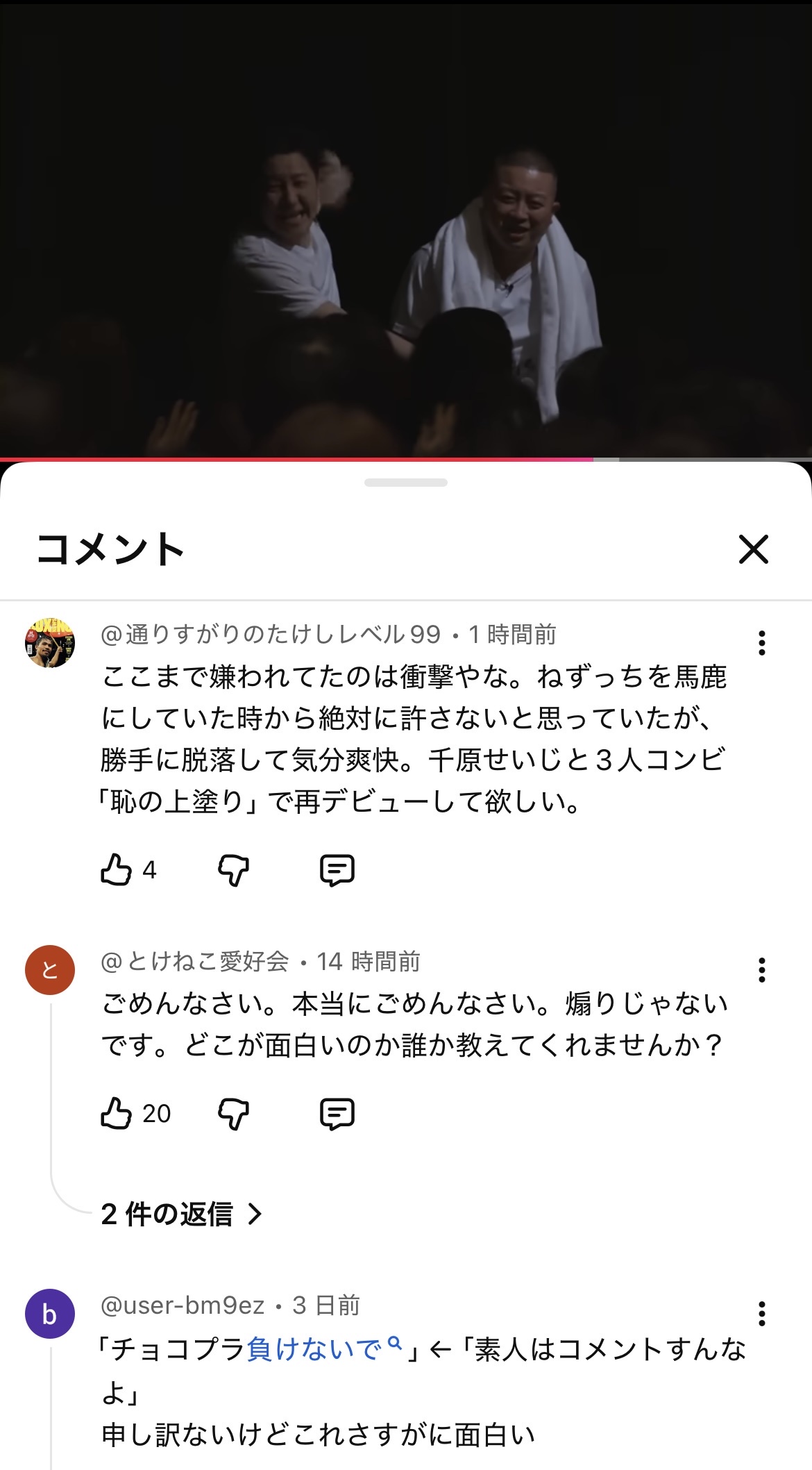 チョコプラの謝罪が逆効果になっているのは意外でした。SNSの反響が過熱する中、素人の意見に振り回される現象が面白いです。今後の彼らの行動や対応に注目したいですね。