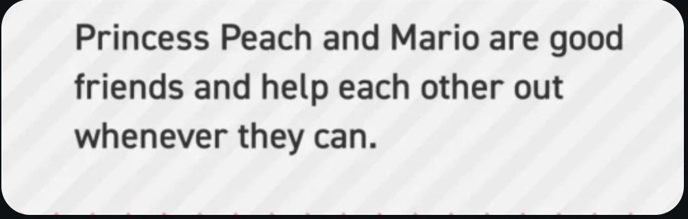 “Princess Peach and Mario are good friends and help each other out whenever they can.”