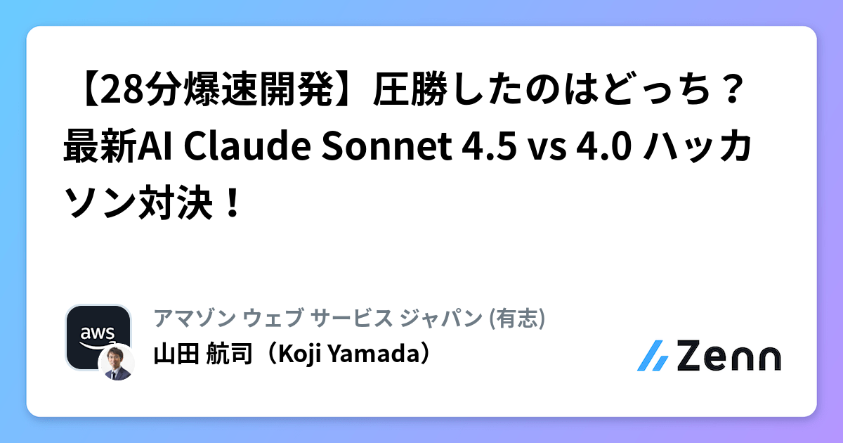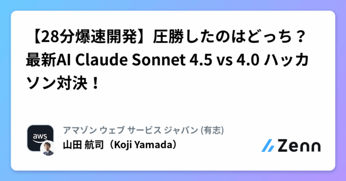 今回は、AI駆動の開発支援ツールのAmazon Q Developerを用いて、Claude Sonnet 4.5(最新モデル)とClaude Sonnet 4.0(Amazon Q Developerで選択できる4.5以外では最新のモデル)の2つに、同じAWS Summit Japan 2025 の生成AIエージェントハッカソン課題を与えて、実際にプロダクト開発対決をさせてみました。