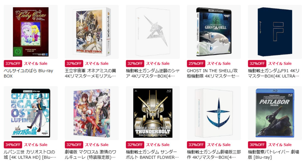Amazonでは、様々なジャンルの商品が大幅に値引きされる「AmazonスマイルSALE」を4月21日(月)まで開催している。その中で、名作アニメのブルーレイ/DVDソフトも数多くプライスダウンとなっており、まだまだ見逃せないセールとなっている。