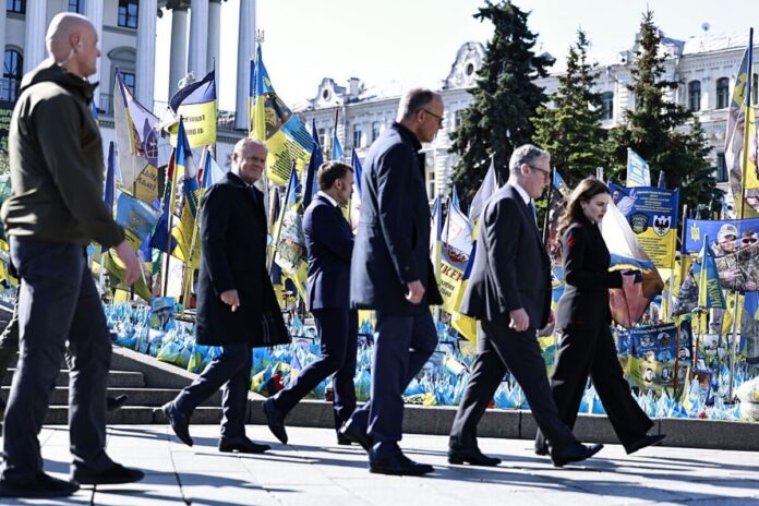 ウクライナのゼレンスキー大統領は10日、首都キーウでマクロン仏大統領とメルツ独首相、スターマー英首相およびポーランドのトゥスク首相と会合を開いた。その後トランプ米大統領と停戦案を協議したという。