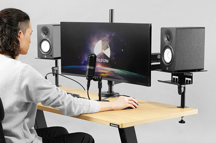 ゲーミング家具ブランドBauhutte(バウヒュッテ)は、デスク上の限られたスペースで、ブックシェルフスピーカーをすっきり配置できるとするクランプ固定型スピーカースタンド「BHP-SP190」を発売する。