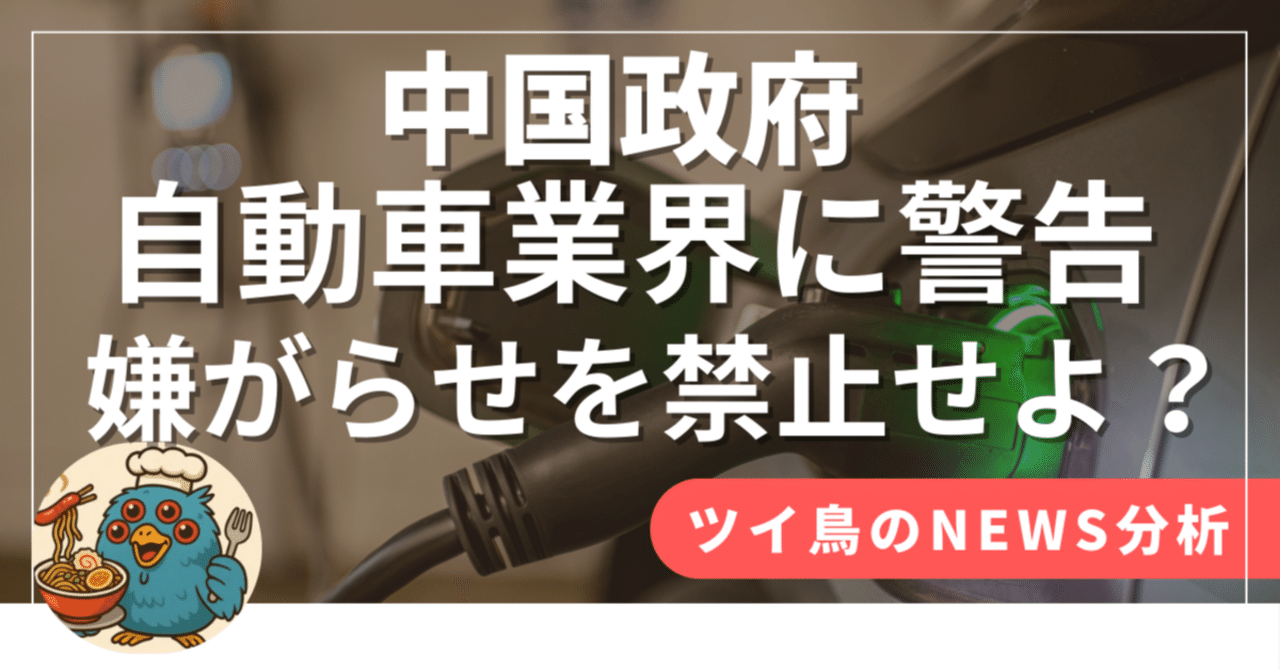 こんにちは、北陸で貿易を営んでいるツイ鳥です。今回は、中国自動車業界の競争事情についてお話しします。最近、中国工業情報省が自動車業界の虚偽のマーケティングや不正行為を取り締まると発表しました。このニュースは、従来のマーケティングの枠を超えた非常に深刻な問題を浮き彫りにしています。