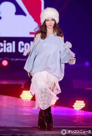 加藤は「4th SHOW」の「ROYAL PARTY」ステージでトリを務め、特に「MLB SPECIAL COLLECTION」と銘打たれた部分では圧倒的な存在感を放ちました。彼女は白のニットハットを合わせたカジュアルなスタイルで、肩出しのシャツ、シースルーのスカート、レザーブーツを組み合わせたファッションを披露。ランウェイでは柔らかな笑みを浮かべ、観客を魅了しました。