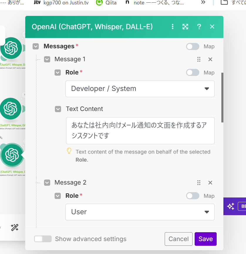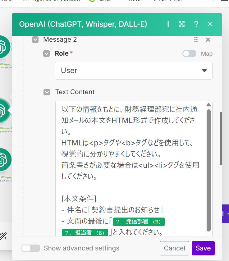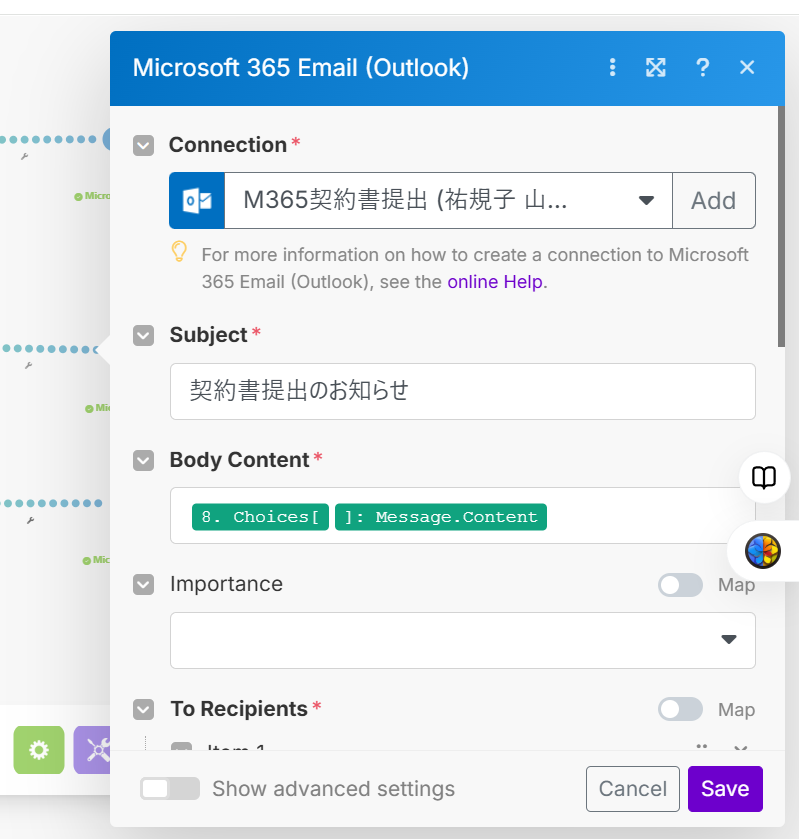 ここではメール本文はBody ContentでOpenAIモジュールより設定します。