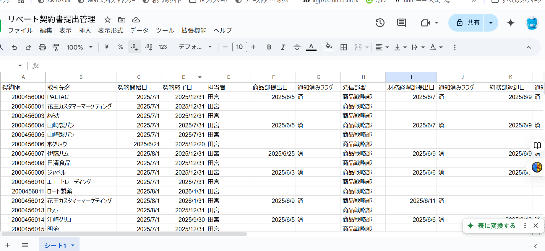 提出済みの契約書の確認も、Excel開いて、契約番号検索して・・日付確認して・・