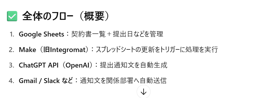 Makeは前回も使ったこと・ChatGPT君は前回もさんざんお世話になったこと・Googleスプレッドシートはこちらも前回使ったこともあり、「大丈夫でしょ(^^)/」と余裕な感じで取り掛かりました。