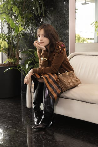 川口は、インターレースデザインのアイコニックな「ピーカブー」バッグのミニサイズも身に着け、ミラノの美しい街並みを背景にその存在感を際立たせていました。
