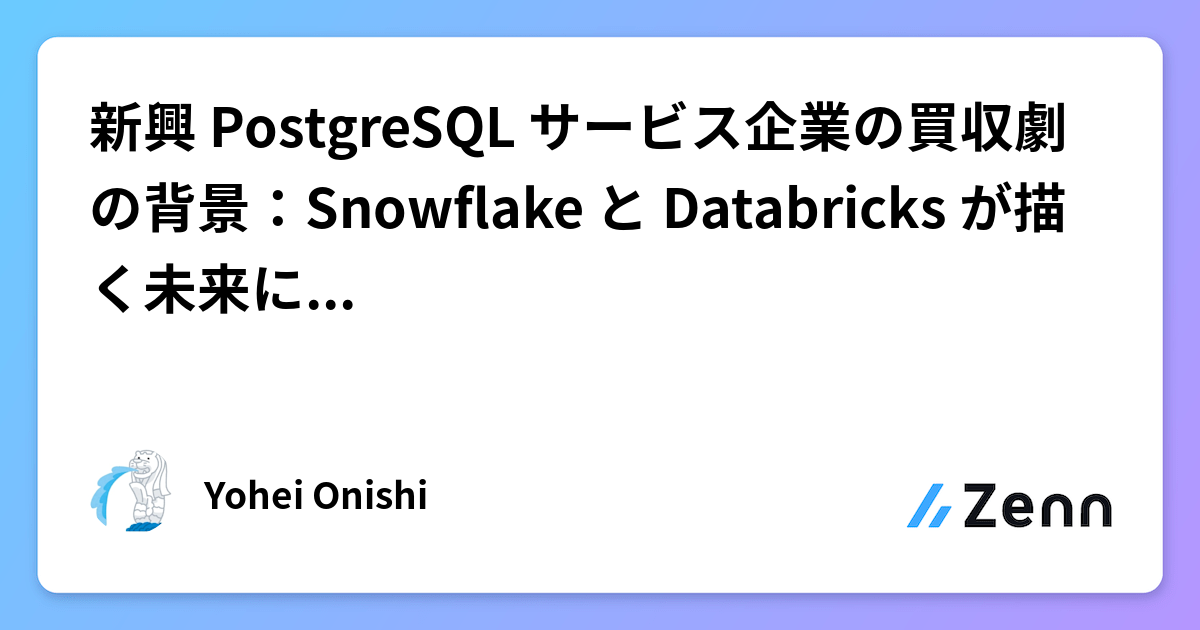 日本の PostgreSQL コミュニティが今月、大きな盛り上がりを見せています。その理由は、データ・AI 業界の二大巨頭である Snowflake と Databricks が、立て続けに PostgreSQL のマネージドサービスプロバイダの新興企業を買収し、両社が PostgreSQL のマネージドサービス提供を開始すると発表したためです。この動きは、 PostgreSQL がこれまで以上に最も重要なデータベースの一つとしての地位を確立し、PostgreSQL ユーザーのスキルが活かせる場が大きく広がっていることを示唆しています。