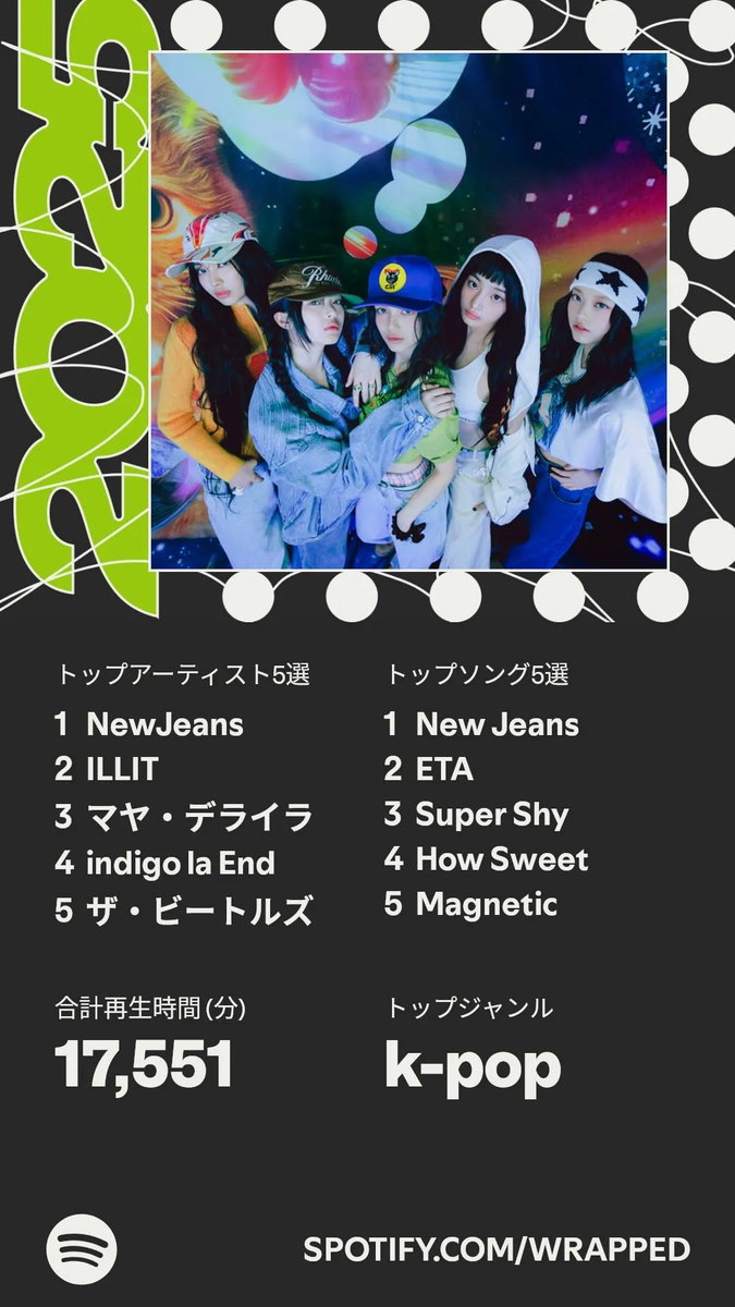 昨年末、Spotifyが出してきた「2025年まとめ」によると、去年僕が一番よく聴いてたアーティストはNewJeansでした。