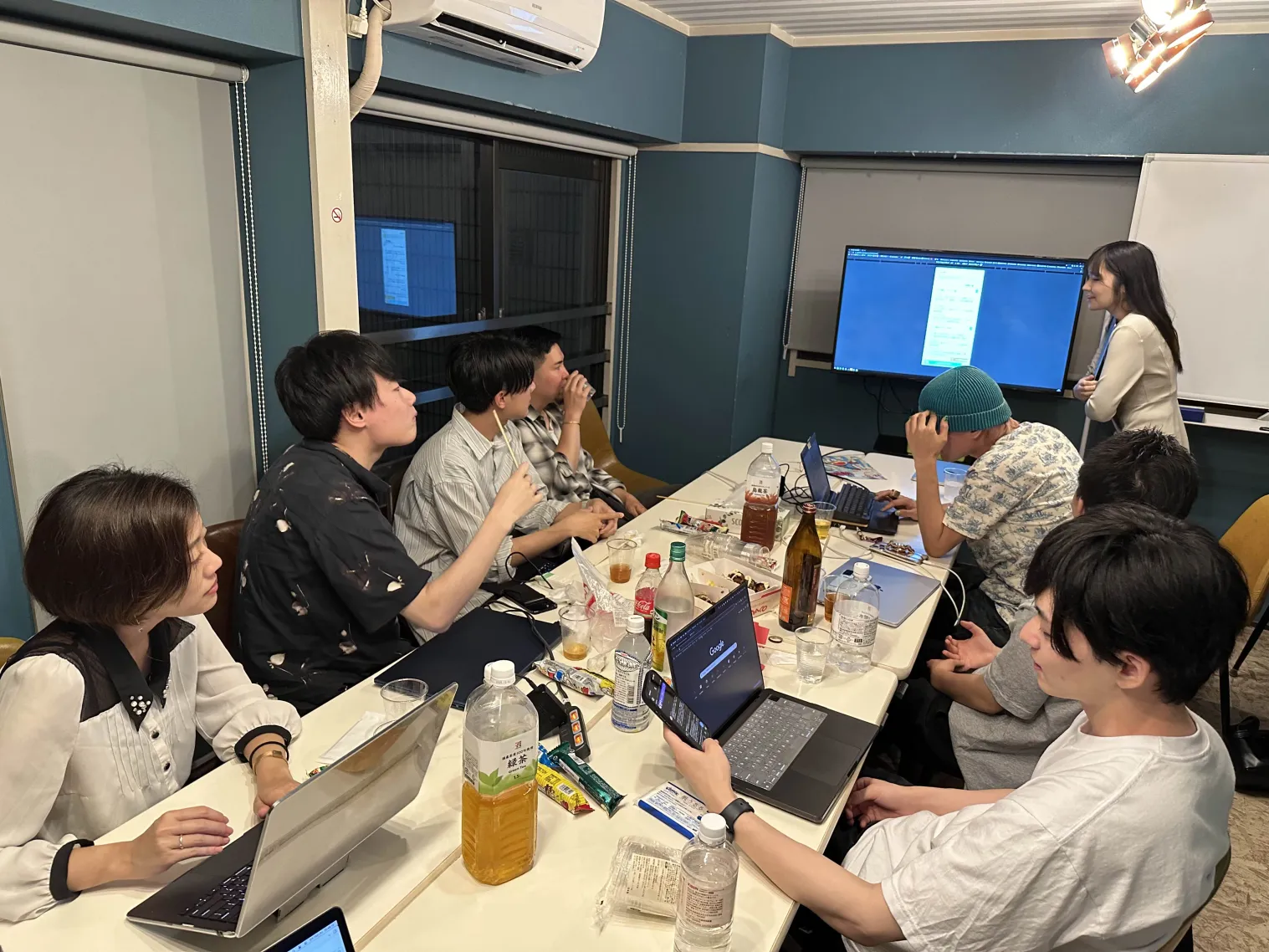 仕事終わりの夜、「プロダクトを褒め合う会」というハッカソン開発の振り返り会が始まりました。