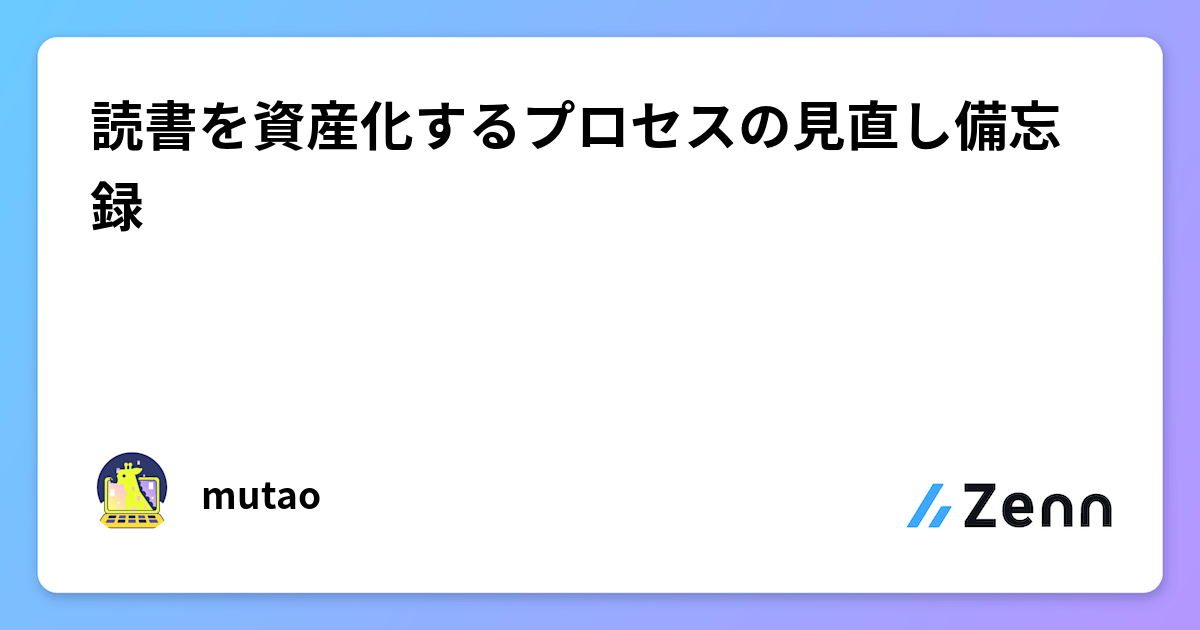 「読んだ内容が散逸しがちなので、 Zettelkasten をヒントにしつつ、自分なりの資産化プロセス…