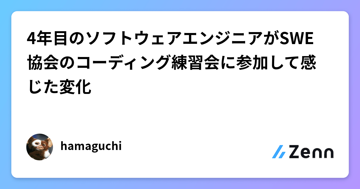 4年目のソフトウェアエンジニアとして、一般社団法人 ソフトウェアエンジニア協会(以下SWE協会)のコーディング練習会に参加して感じた変化を共有します。