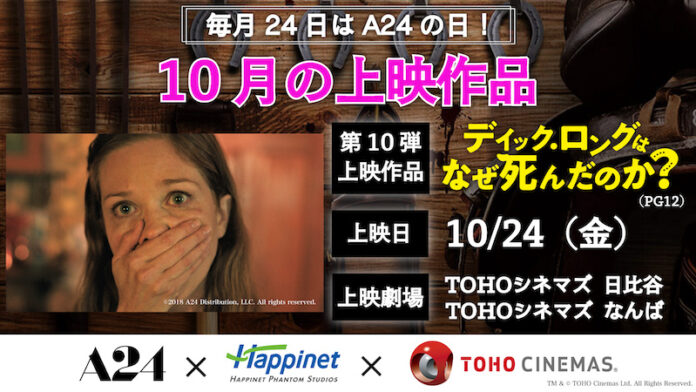 2023年10月、ハピネットファントム・スタジオとA24によるパートナーシップ契約に基づき、TOHOシネマズでの特別上映が開始され、10弾目として『ディック・ロングはなぜ死んだのか?』が上映されることが決まりました。この映画は米国の片田舎を舞台に、ミステリー仕立てのダーク・コメディで、酒に酔った仲間の一人、ディックの死を巡るストーリーが展開されます。