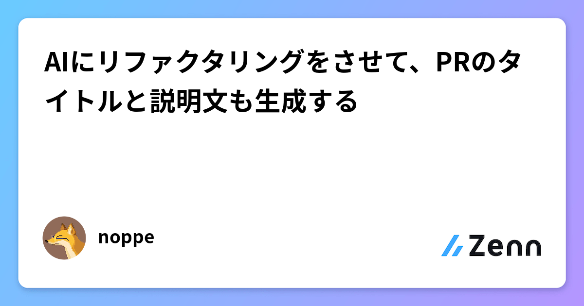 Codexを使ってリポジトリの小さなリファクタリングを自動化しながら、Pull Requestのタイトルと説明文までまとめて生成する方法を紹介します。自動化の狙いは、レビュー前に整った説明を添えることで手戻りを減らすことです。