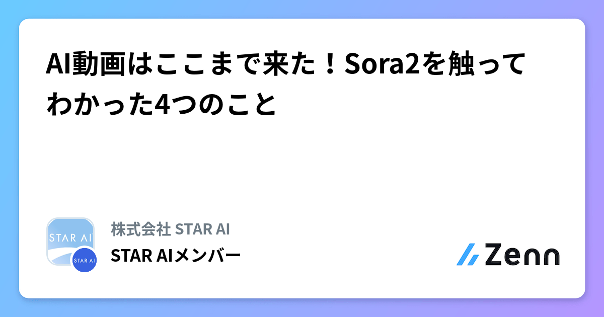 STAR AIの大倉です。10月1日に公開されたばかりの「Sora2」を実際に触ってみたので、今回はその体験をシェアします。