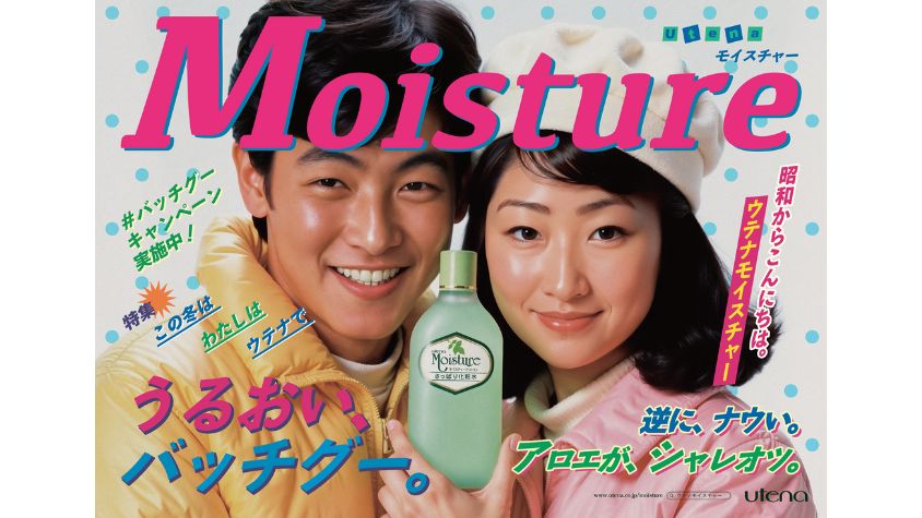 最新のAI技術を駆使し、モデルの髪型やメイクを加工したビジュアルには、当時の流行語「うるおい、バッチグー」を使用。レトロな要素を現代技術で再現することで、若年層の関心を引く狙いがあります。