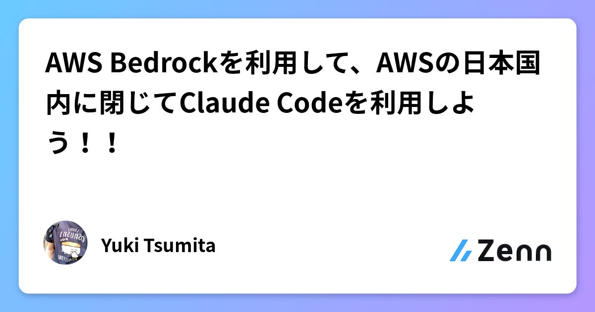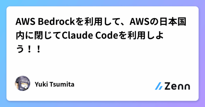 突然ですが、のっぴきならない事情でAWSの日本国内に閉じた形でClaude Codeを利用したいと思ったことはないでしょうか?