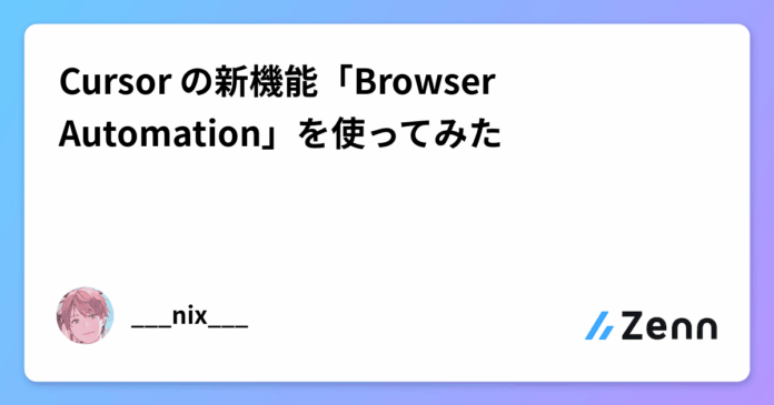最近、気になっている方は気になっているかと思いますが、Cursor の Tools に表示されている「Browser Automation」とは何だろう?どうやって使うのだろう?という疑問に答える内容になっています。