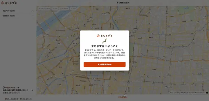 個人の勉強がてら、行政組織のデータを使って、下記のようなサイト(以下、まちきずき)を作ってます。