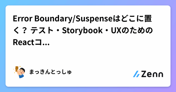 Error Boundary と Suspense をどこに置くか悩みませんか?かつての自分はこの設計をうまくできず、テストが書きづらい、1 つのエラーで全体が落ちる といった問題に苦しみました。