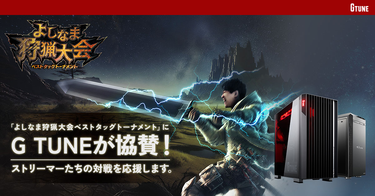 「よしなま狩猟大会ベストタッグトーナメント」協賛特設ページでは、協賛しているG TUNEと、オンライン・直営店限定のNEXTGEAR製品が掲載されている。