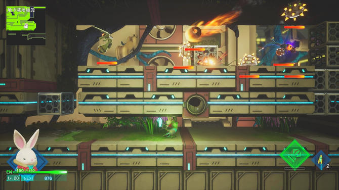 2.5Dアクションでは愛機「ポンコツ」のツールを駆使して突き進む!