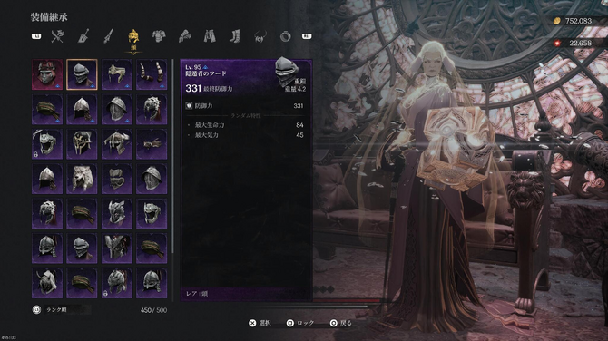 敵を倒すと得られるラクリーマ(経験値)を使用することで行われるこのレベルアップ……基本的にボス戦で手こずった時は、レベルを上げればだいたいなんとかなります。レベルが1つ上がるごとに、体力や持久力といった各能力のなかから1つを強化可能。その能力からさらに複数のパラメータが強化されていきます。