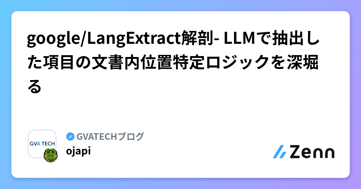 LangExtractは2025年7月にGoogleが発表したLLMを用いた項目抽出ライブラリです。