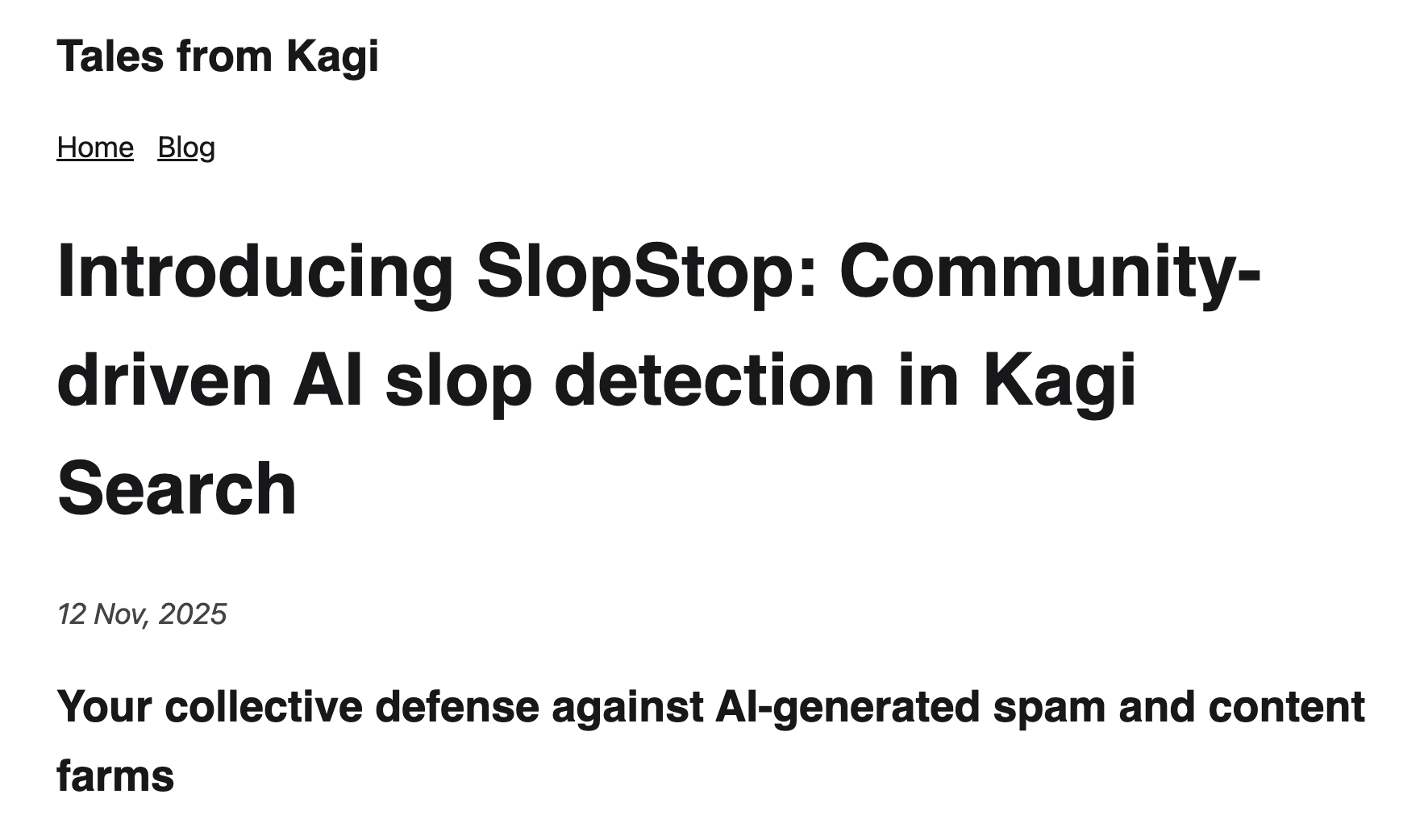 また、Google が AI のスロップを気にしているとも思えません。同様に、『プレデター: バッドランズ』の映画レビューが人間によって実際に映画を観て書かれたものであるかどうか、またはLLMは基本的に映画レビューがどのようなものかを知っているため、ジェミニがおならをしたレビューであるかどうかを彼らは気にします。私、確かに知りたいです。だから私はKagiに満足しています スロップストップ アイデア。