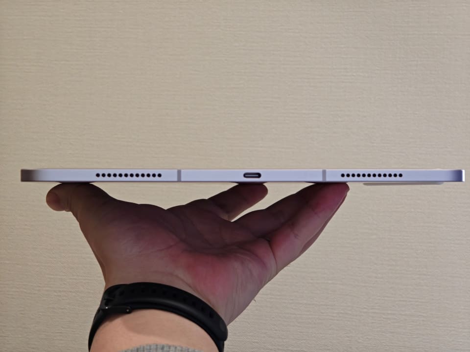 また、iPad Air(M3)は本体の厚みがわずか6.1mmと、かなり薄型なつくりになっているため、カバンにも収めやすい。これは上位モデルよりも明確に優れている点と言えるだろう。質量に関しても、今回試用した13インチモデルでも、617gに抑えられている。