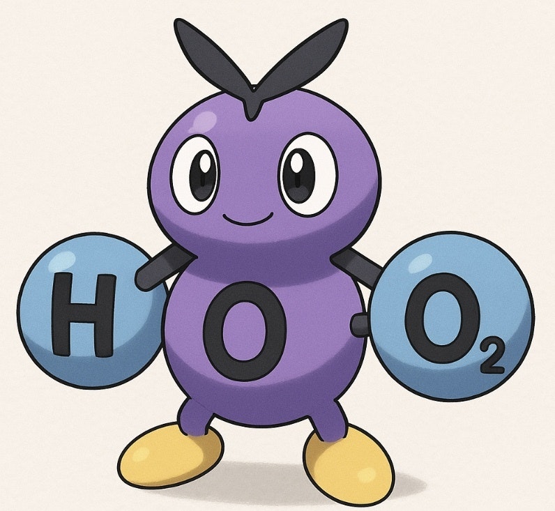 H2Oの化学式でポケモン風のキャラを画像生成AI(gpt-image-1)に作ってもらった画像