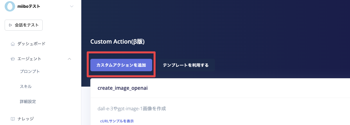 補足: カスタムアクションのコードはmiiboのAIに作ってもらった 読み飛ばしてOK
