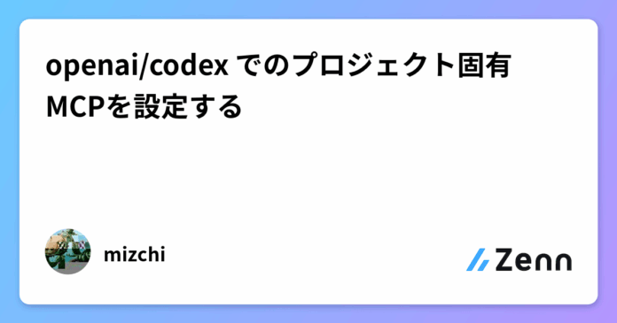 claude code はプロジェクトごとに mcp 設定を独立させることができましたが、 現状の codex はグローバルに MCP を設定する方法しかありません。