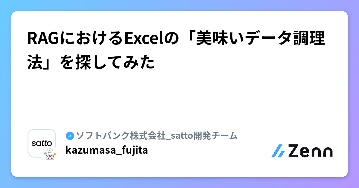 こんにちは!satto workspaceでRAGやAgent周りの料理人をしている 藤田(@kazumasa_fujita)です。