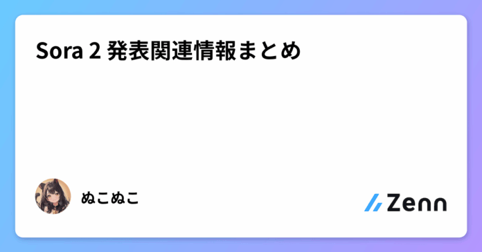 OpenAI から動画生成サービスの Sora 2 が発表されました。想像以上にリソースが多かったのでまとめます。
