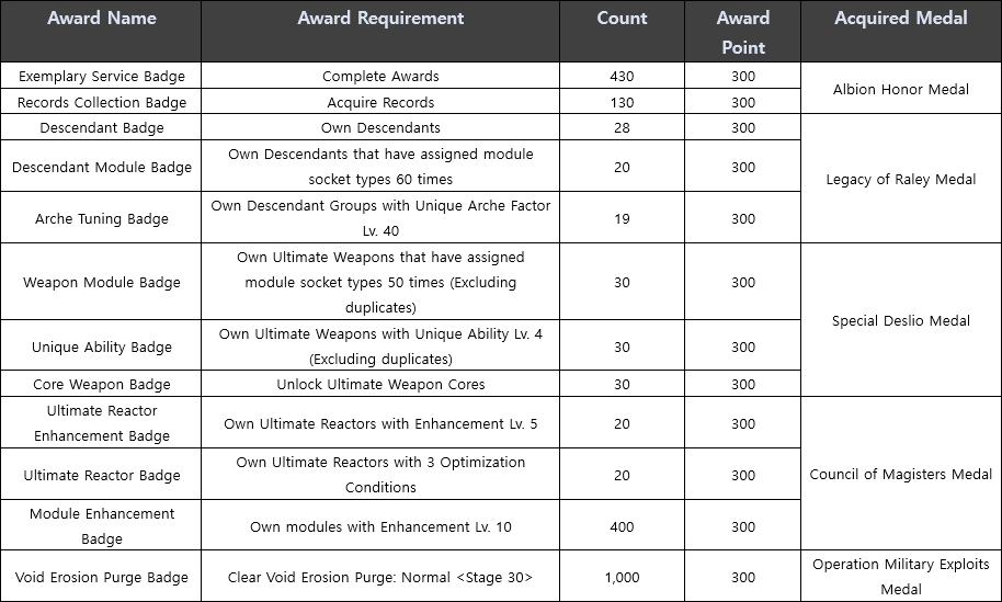 ㆍ For these Awards, the Award Points have also been adjusted to match the difficulty adjustment.