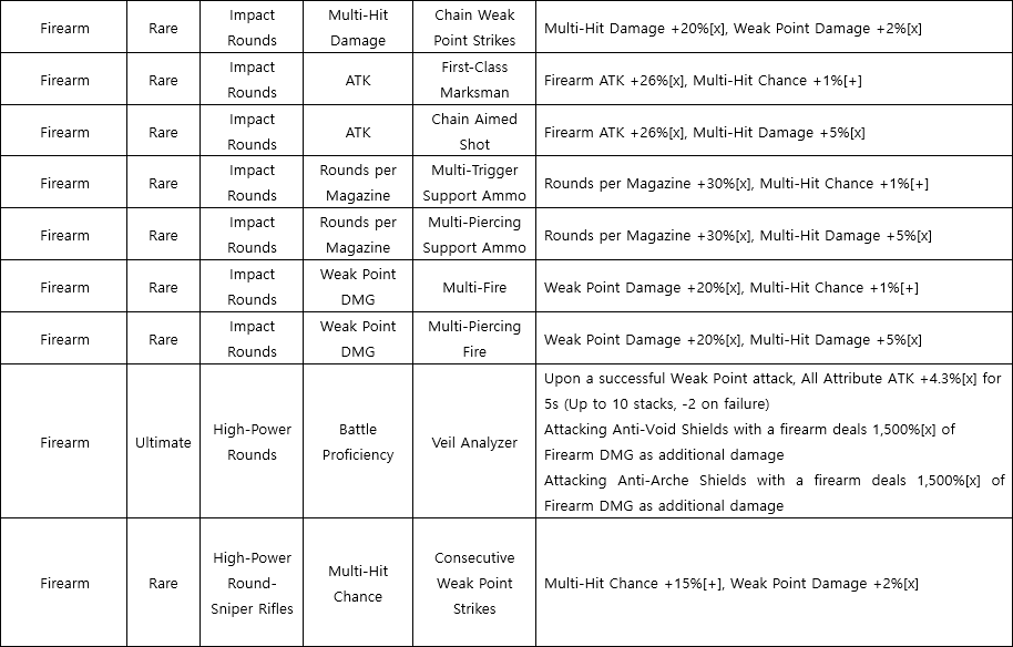ㄴ Applied to: Firearm, Module, Accessory, Inversion, Arche Tuning, Reactor, Random Options, Weapon Core Unlocking
