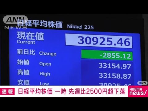 日経平均は先週末から600円以上下げて始まり、その後、下げ幅は2500円を超えています。